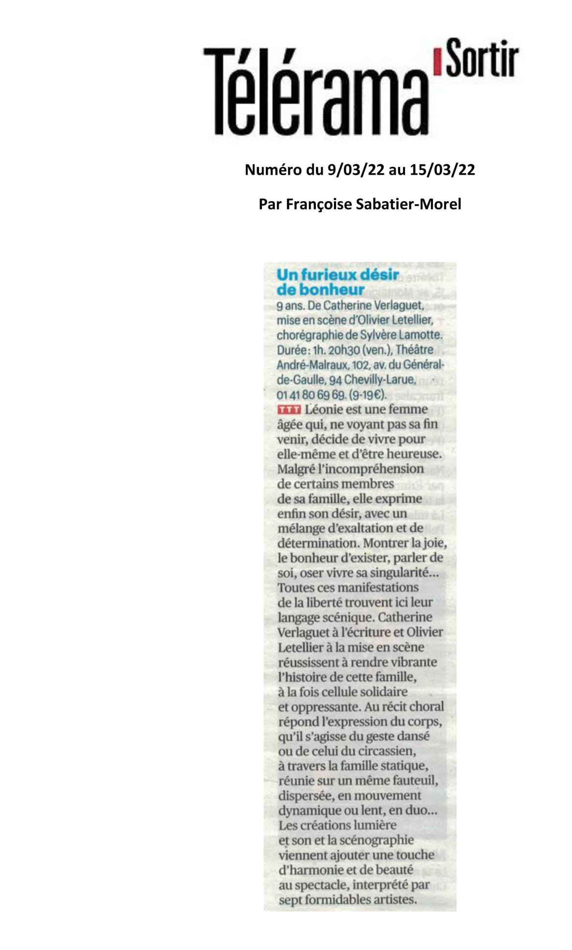 Telerama Sortir du 9 mars 2022